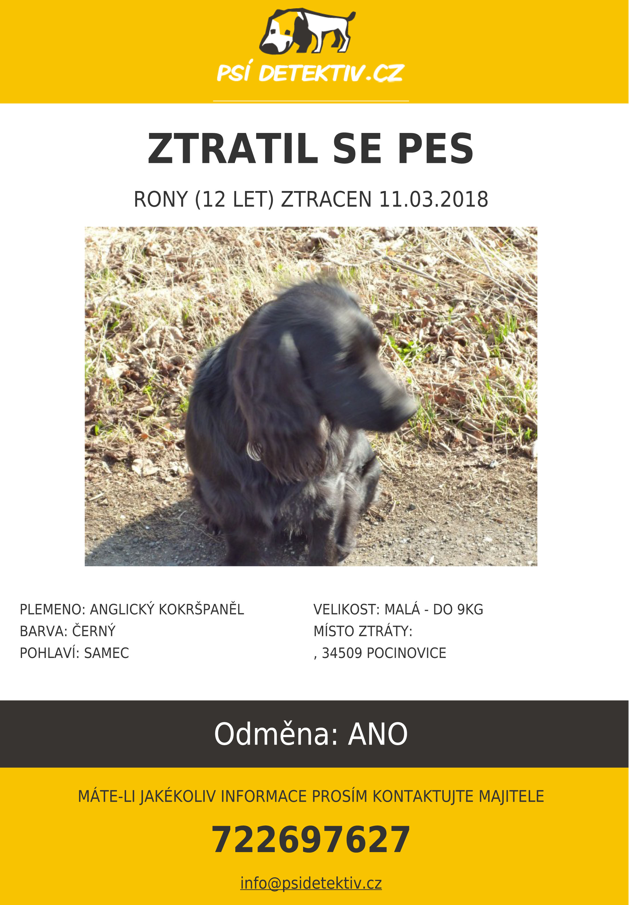 Ztratil se pes RONY (12 let) ztracen 11.03.2018