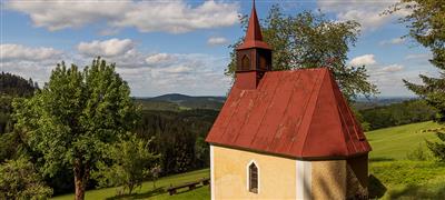 Znovupostavená poutní kaple na místě poustevny sv. Vintíře. Skála na vrcholu hory Březník. Místo, kde se psala dávná historie.