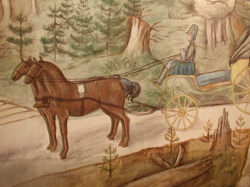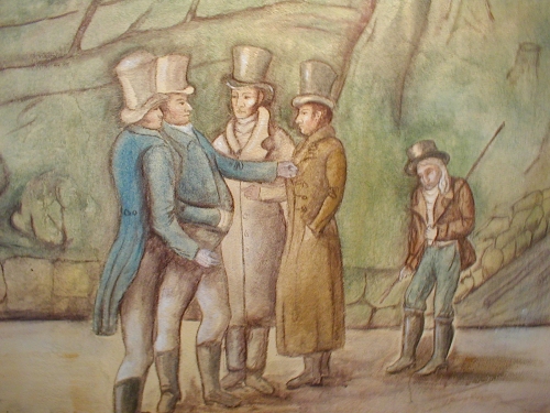 Z expozice kanálu na Jeleních Vrších: freska s knížepánem, kterak se dohaduje s Rosenauerem.