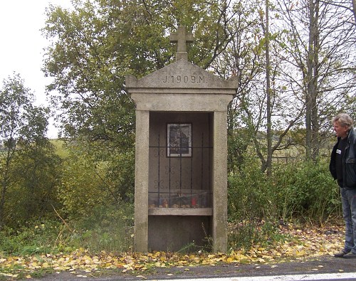 Původně stávala žulová kaplička mimo dosah staré cesty. Ta vedla o několik metrů dále. Její strmý spád byl při stavbě nové silnice zmírněn zatáčkou, která se téměř dotkla kapličky. Dlouho bylo vše v pořádku, až v prosinci roku 2011 kterýsi holandský řidič nevybral se svým terénním autem zatáčku a milá kaplička to odnesla. Na místě zůstaly jen poházené žulové bloky a reflektor auta, které srážku také nepřežilo bez úhony.
