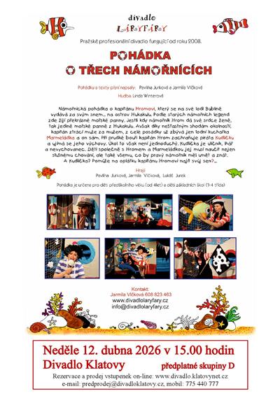 | POHÁDKA O TŘECH NÁMOŘNÍCÍCH - Jarmila Vlčková a Pavlína Jurková předplatné skupiny D, volné vstupenky v prodeji | ||