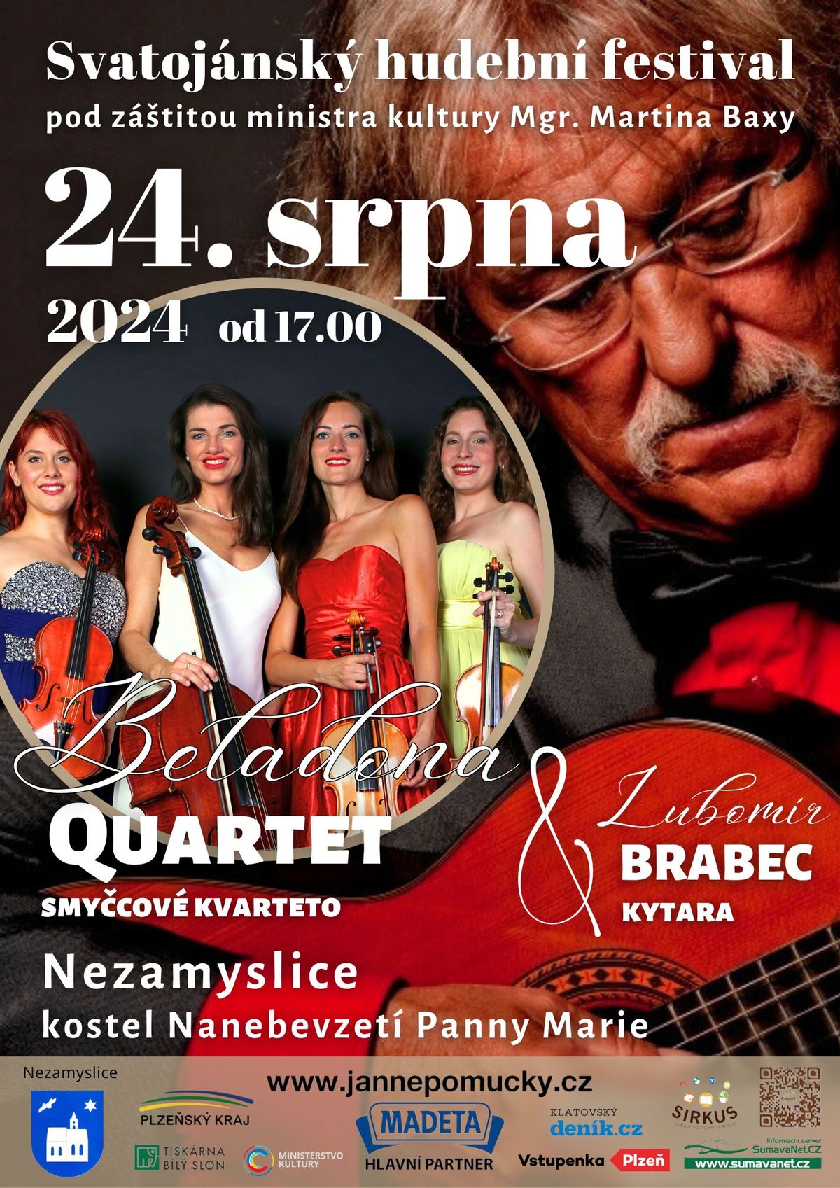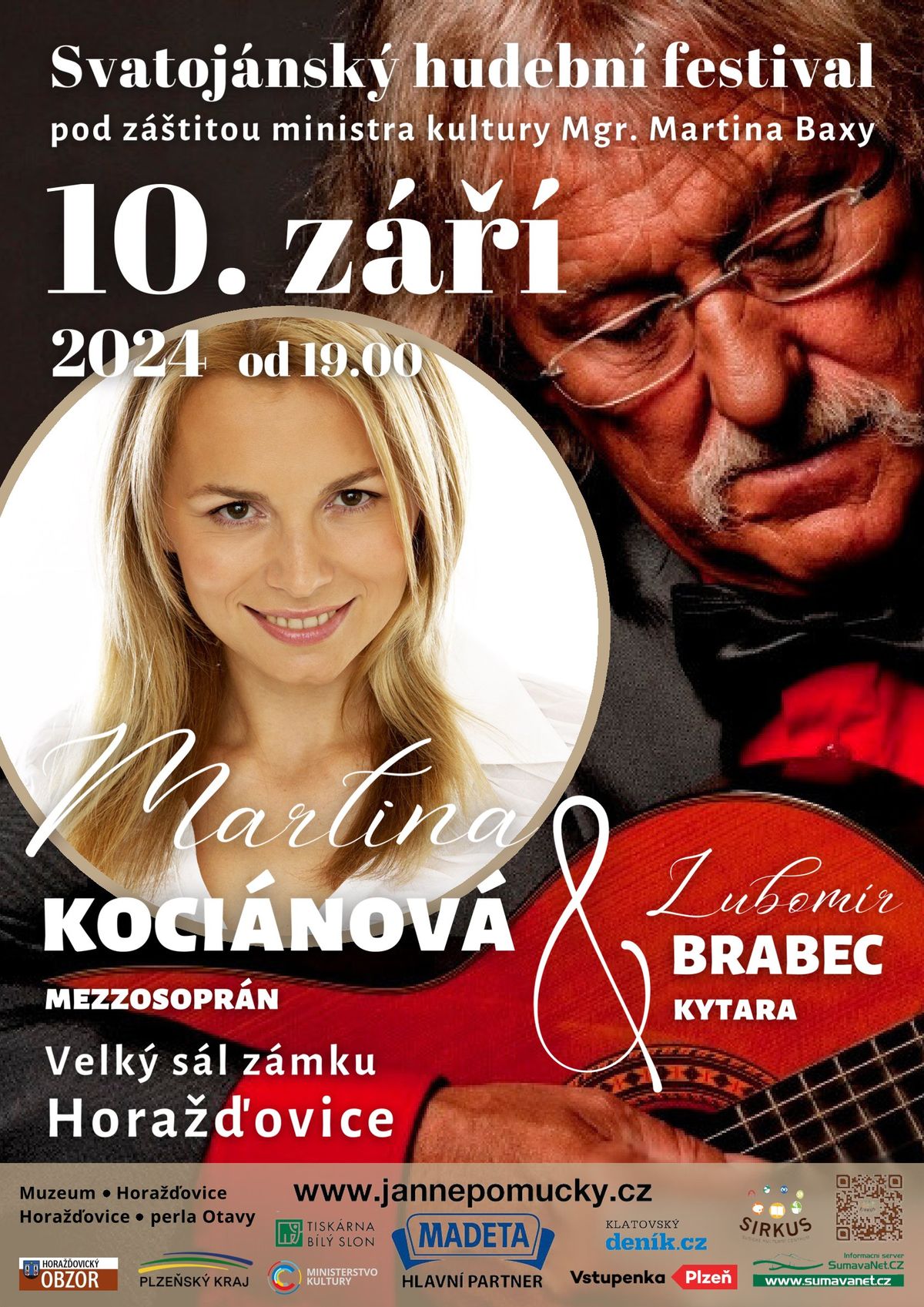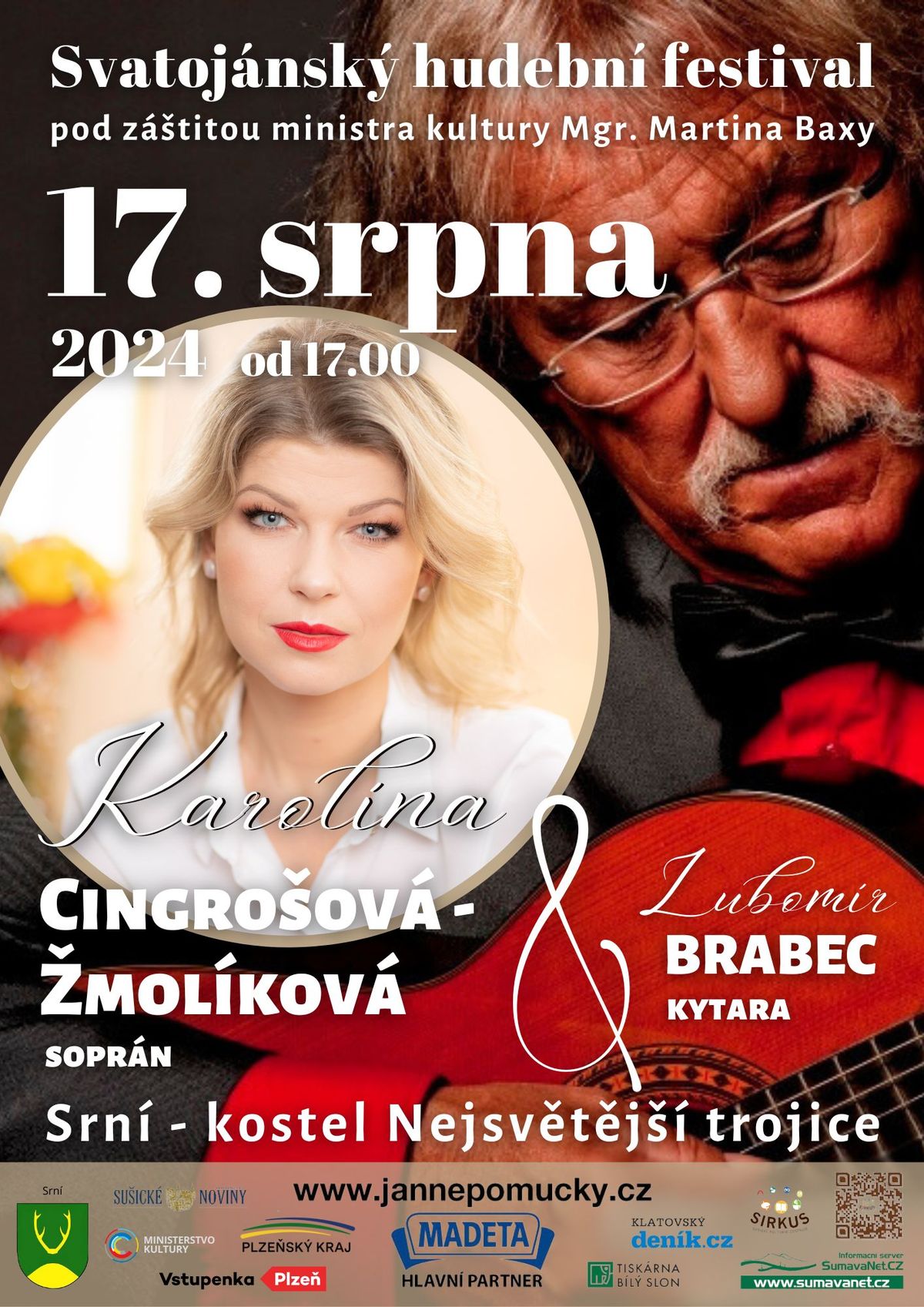 V sobotu 17.srpna při příležitosti pouti v Srní zazní v kostele Nejsvětější Trojice písně G. F. Haendla, Antonína Dvořáka, Heitora Villa-Lobose a Enriequa Granadose v podání Karolíny Cingrošové Žmolíkové1 za doprovodu Lubomíra Brabce. O týden později 24.srpna, opět v sobotu v Nezamyslicích zahraje Lubomír Brabec za doprovodu brněnského dámského BELADONA KVARTET slavné kytarové koncerty. V Klenčí pod Čerchovem 5.září pak zazáří slavný muzikálový basbarytonista Daniel Hůlka a 10.září v Horaždovicích se představí mezzosopranistka Martina Kociánová, kterou jistě také znáte, jako slavnou rozhlasovou moderátorku.