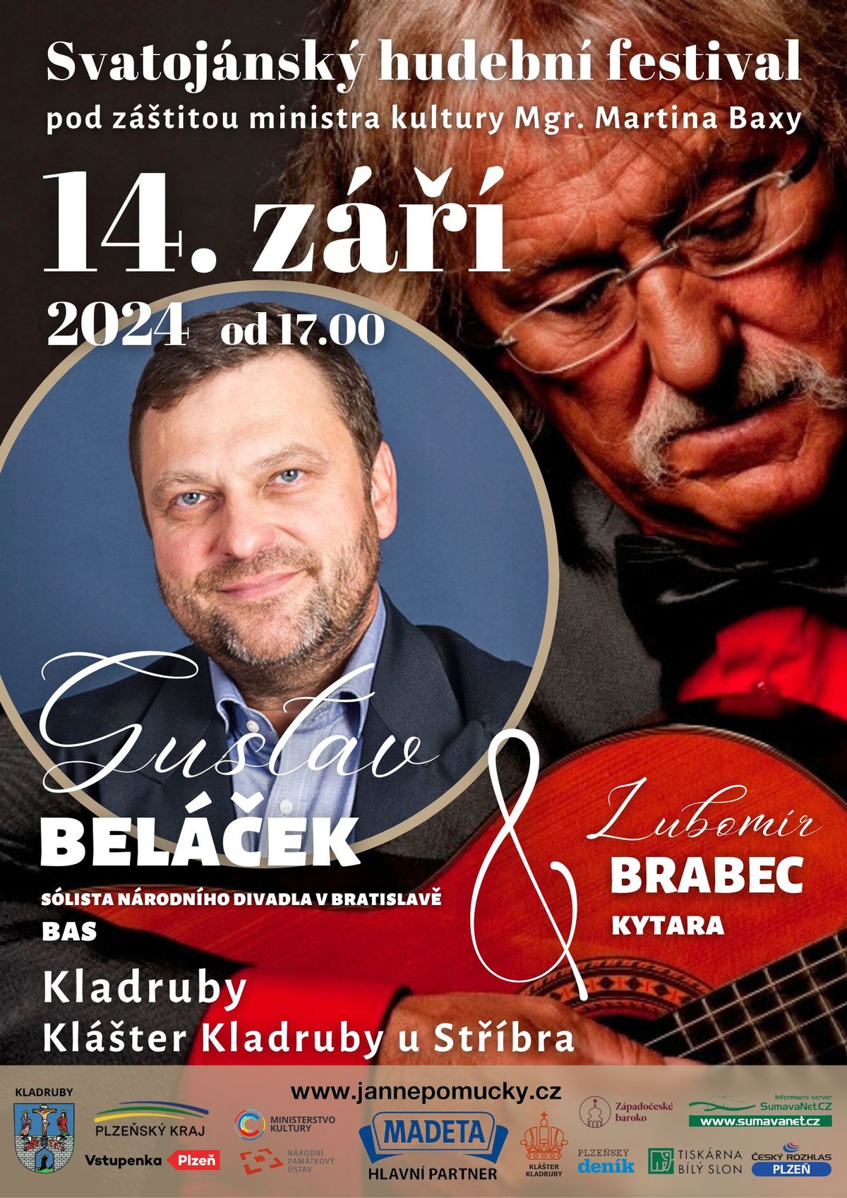 Závěrečný koncert se uskuteční v sobotu 14. září v 17.00 hodin v kostele kláštera Kladruby u Stříbra. Přijal na něj pozvání nejvyhledávanější slovenský operní pěvec, sólistka Slovenského Národního divadla basista Gustáv Beláček. Vystoupí za doprovodu kytarového virtuosa Lubomíra Brabce, V jejich podání si posluchači vyslechnou skladby G.F.Haendela, Césara Franka, Alexandra Michajloviče Glinky, Franze Schuberta, Antonína Dvořáka i Jaquesa Iberta.
