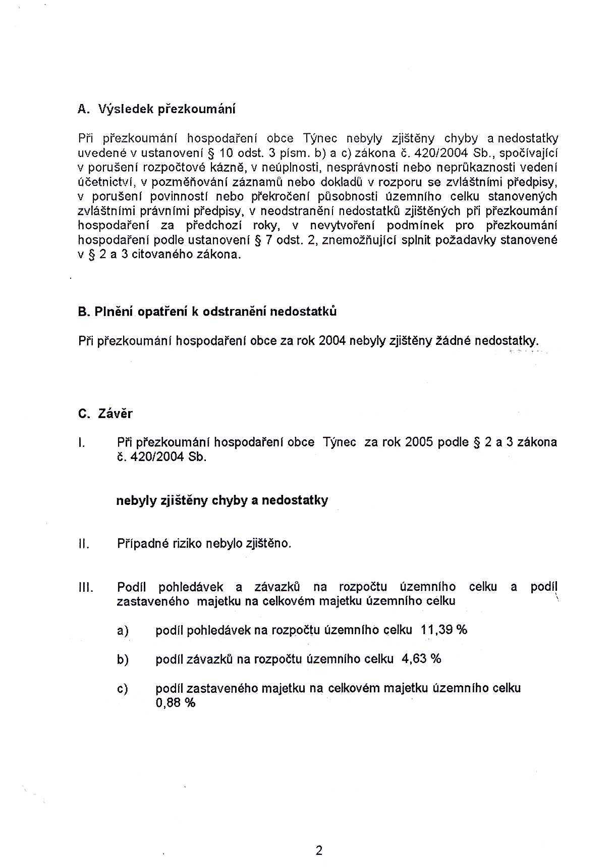 ZÁVĚREČNÝ ÚČET OBCE TÝNEC ZA R.2005, | OBEC TÝNEC
