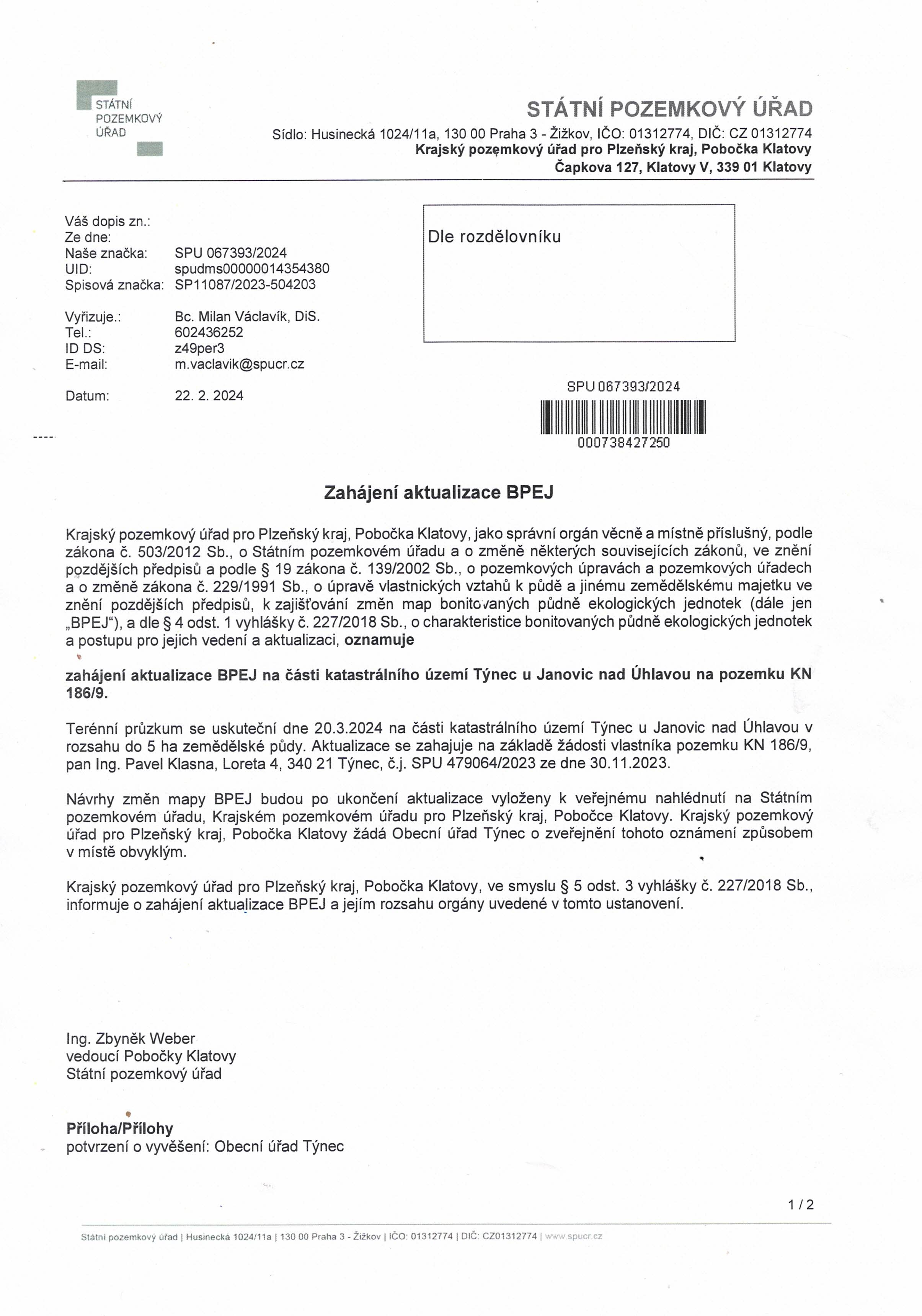 Zahájení aktualizace BPEJ