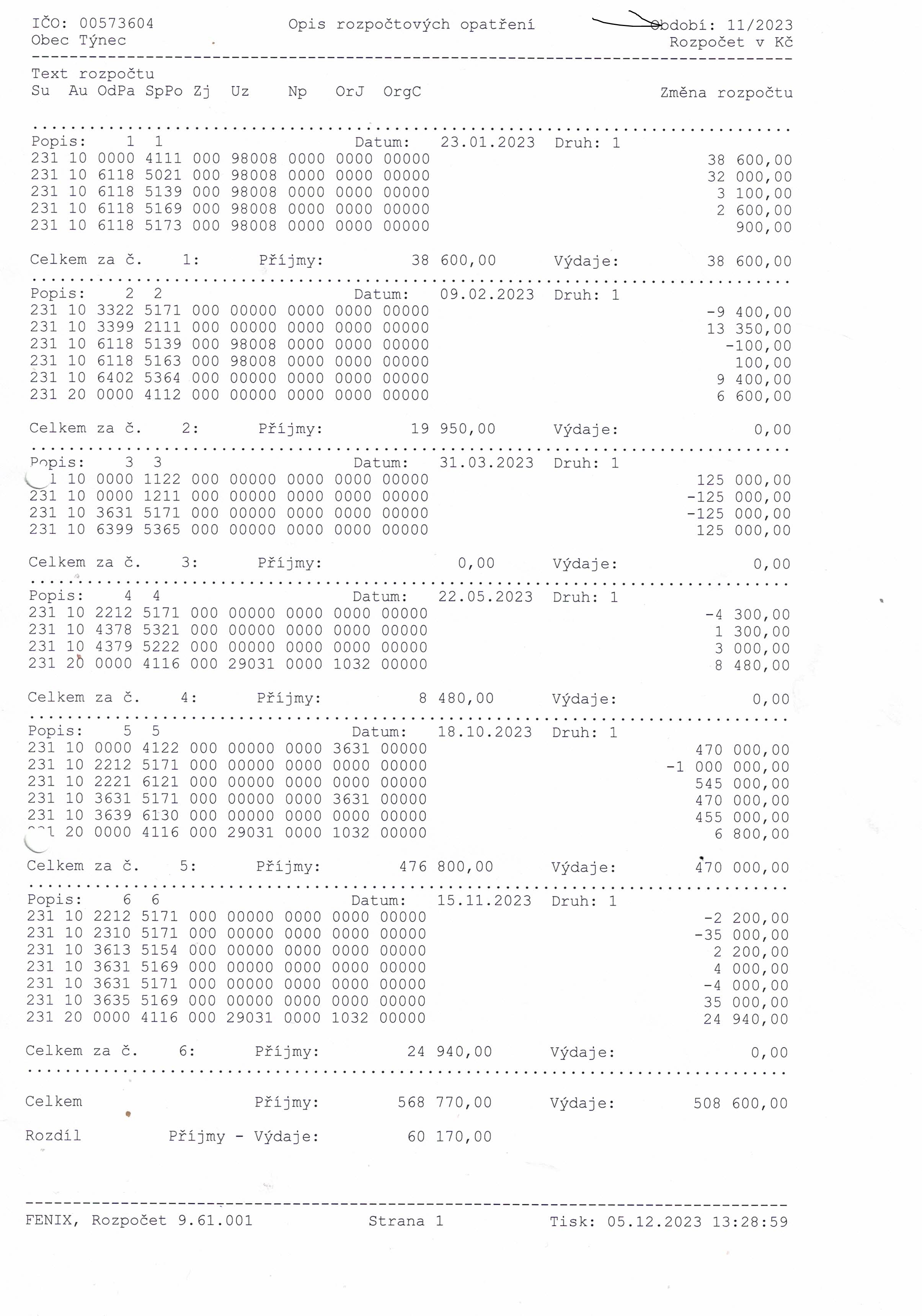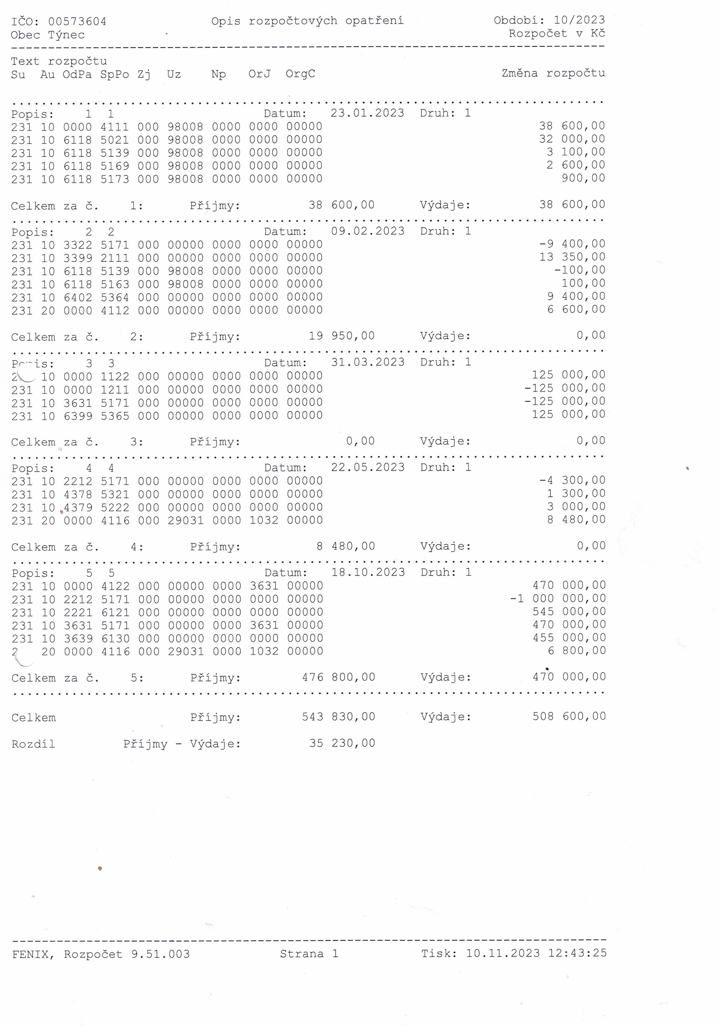 Rozpočtové opatření č. 5 2023
