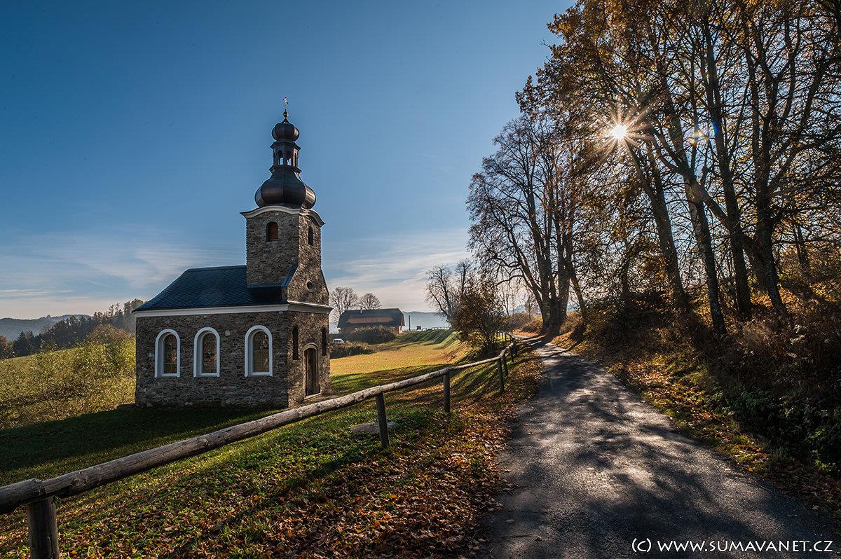 The interior of the chapel houses a glass altar from the workshop of the famous glass artist Vladěna Tesařová, who lives in nearby Dobrá Voda. Occasional masses and events are celebrated in the chapel.