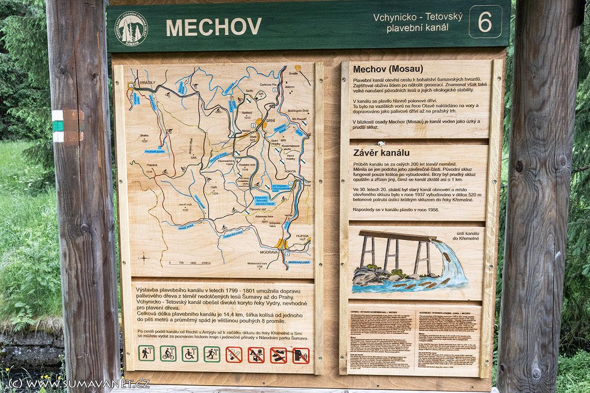 Naučná stezka kopíruje celý Vchynicko – Tetovský kanál od Rechlí až do blízkosti Srní. Cesta je po celé délce značena, díky iniciativně Klubu českých turistů, jedinou turistickou zelenou značkou. Na zajímavých úsecích a na křižovatkách cest je deset informačních tabulí, ze kterých se návštěvník dozví historické, přírodopisné, kulturní i technické údaje v českém,německém a anglickém jazyce. Na mnoha místech jsou lavičky a vyhlídková zastavení. Stezku mohou využívat nejen pěší turisté, ale i cyklisté a v některých rovných částech i vozíčkáři.