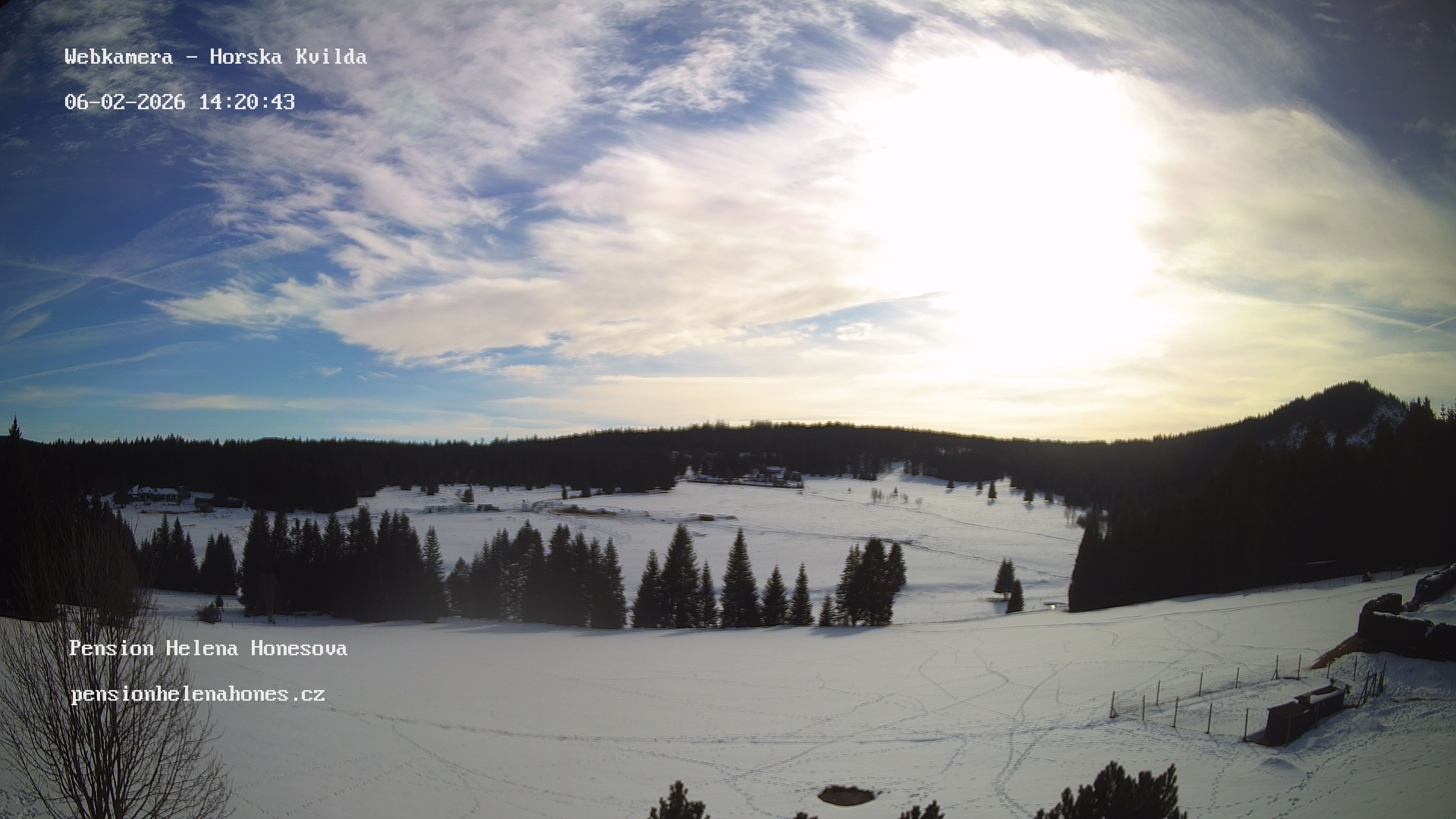 Kamera snímá výhled do údolí Hamerského potoka a horu Antýgl.