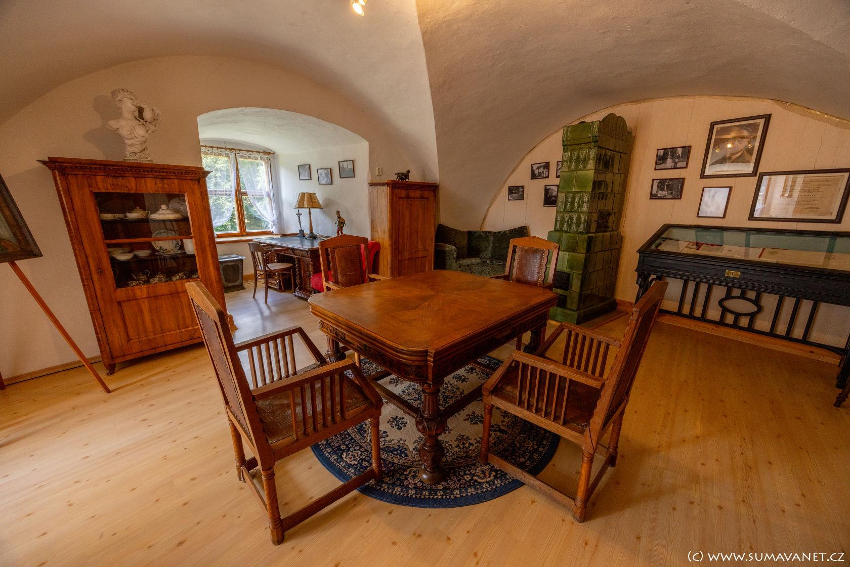 Ve zrestaurovaných sklepeních zámku je umístěna stálá expozice pošumavských lidových řemesel a historii zámku. V nedalekém infocentru lze domluvit prohlídku.