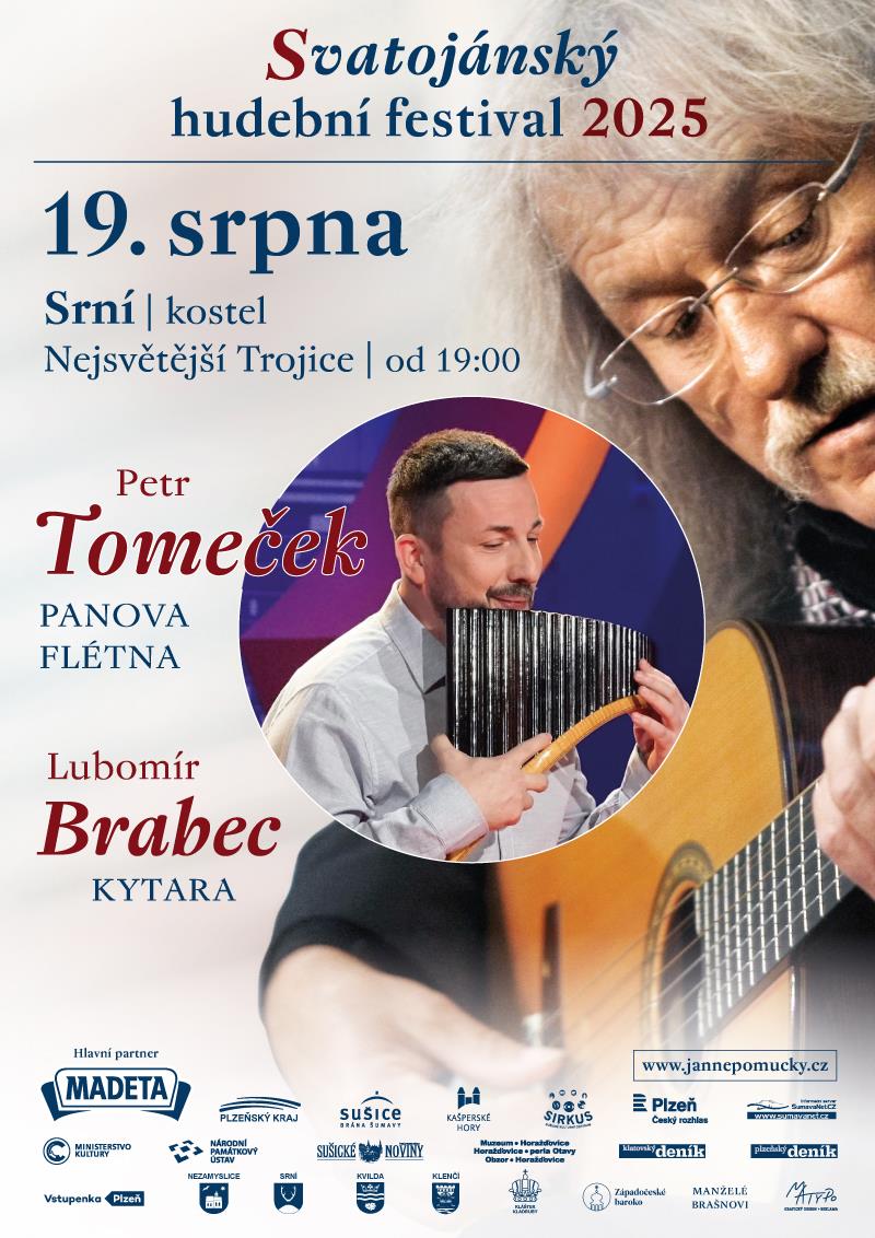 V úterý 19. září v 19.00 hodin v Srní v návaznosti na pout´ se nechte se okouzlit nebeskými tóny Panovy flétny. Spojení tohoto netradičního hudebního nástroje s mistrovskou kytarou Lubomíra Brabce je ojedinělé a úžasné. Petr Tomeček, mistr Panovy flétny Vás provede tóny mytologického nástroje světem hudby s nejkrásnějšími melodiemi a opravdovými skvosty klasické hudby v nádherném prostředí šumavského kostelíka
