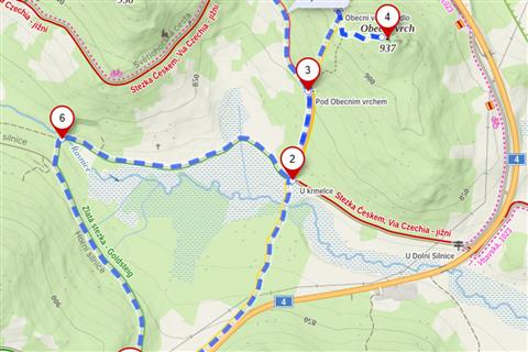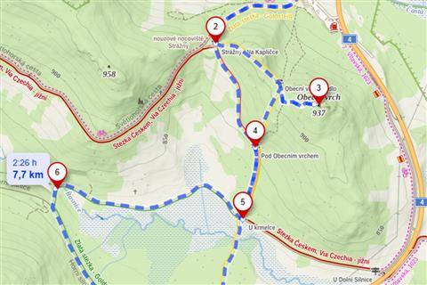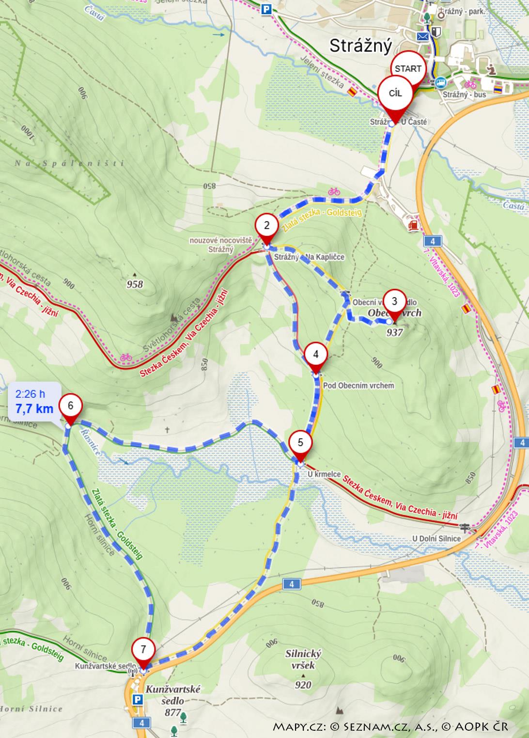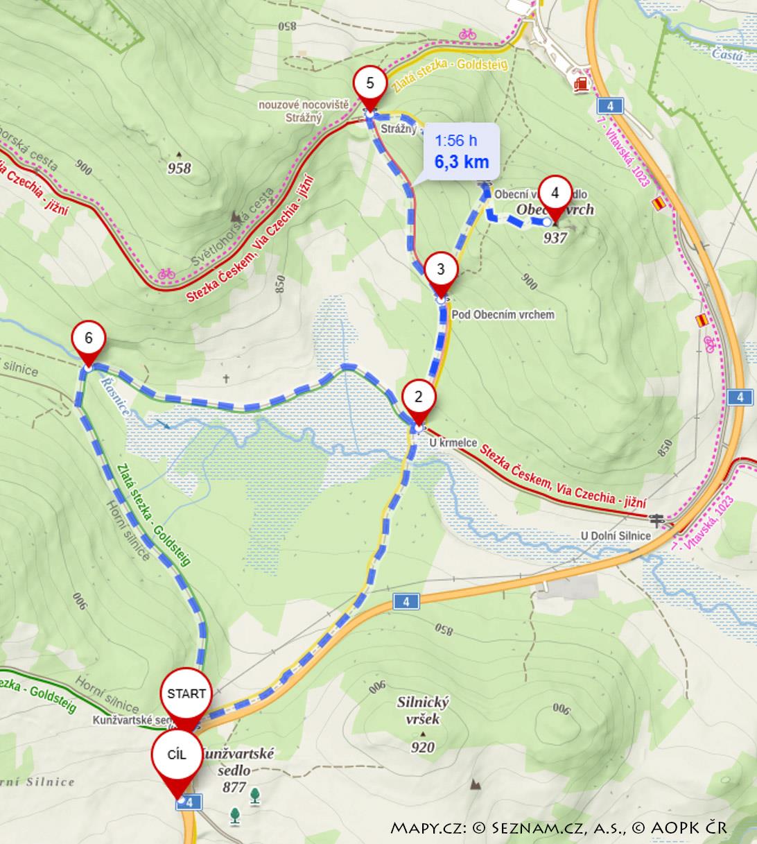 Začátek i konec trasy je zvolen na hraničním přechodu Strážný – Philippsreut (6,3 km).