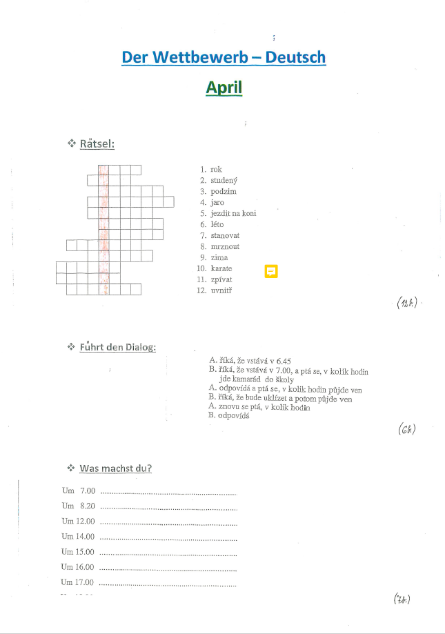 Německý jazyk - "Der Wettbewerb - Deutsch" (ke stažení v pdf)