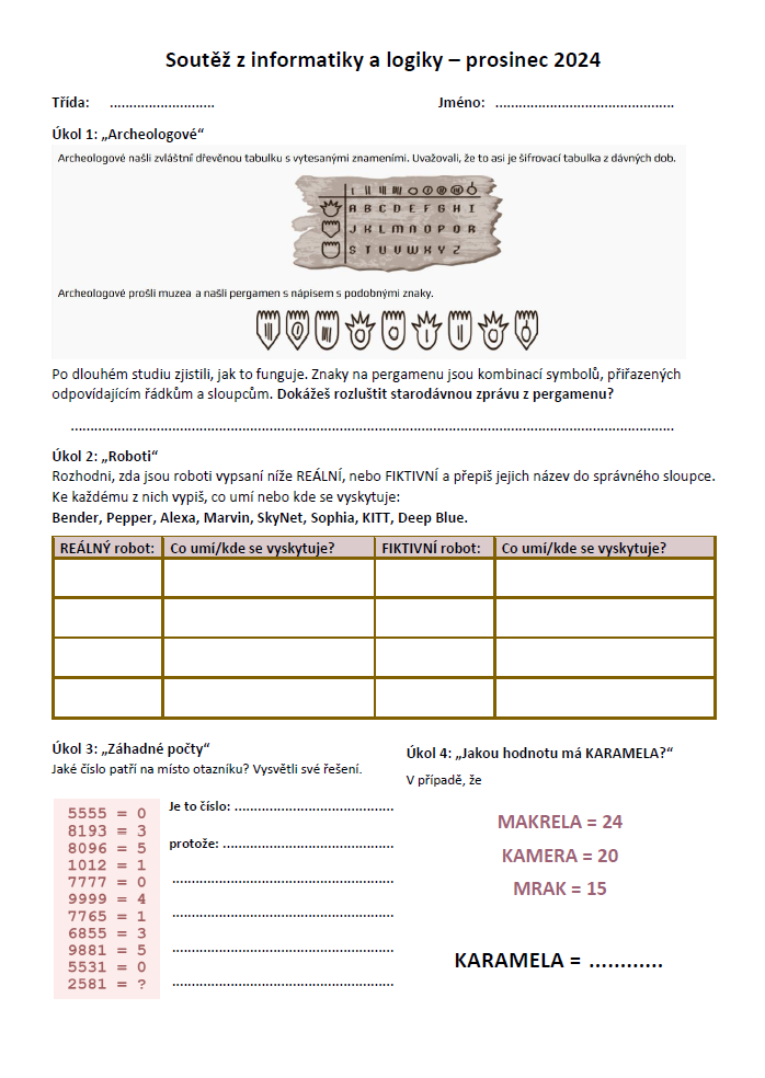 Matematická soutěž - "Logik" (ke stažení v pdf)