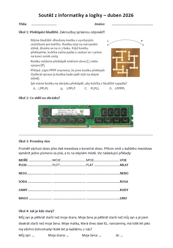 Matematická soutěž – "Logik" (ke stažení v pdf)